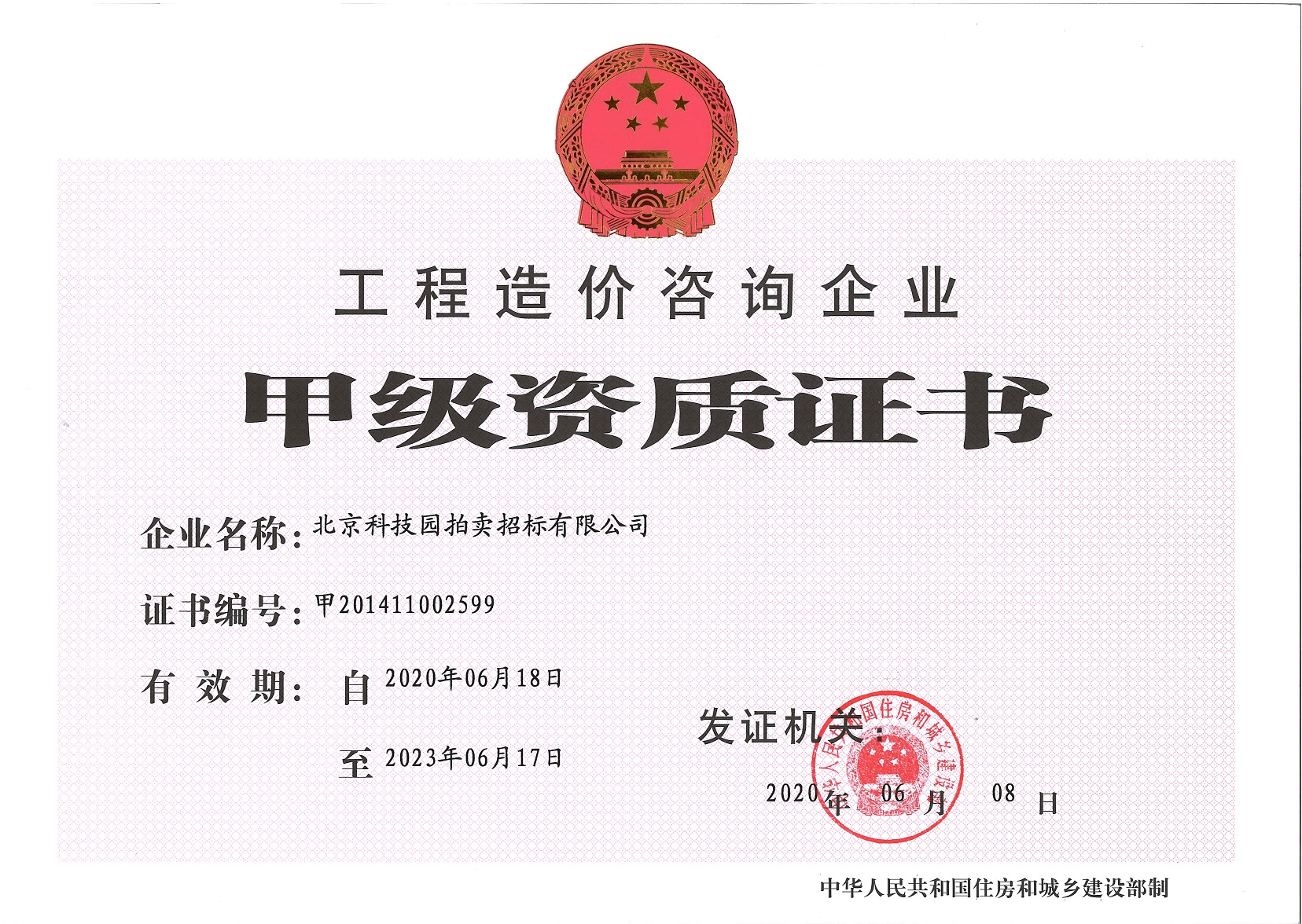 工程造價(jià)咨詢(xún)企業(yè)甲級(jí)資質(zhì)證書(shū)