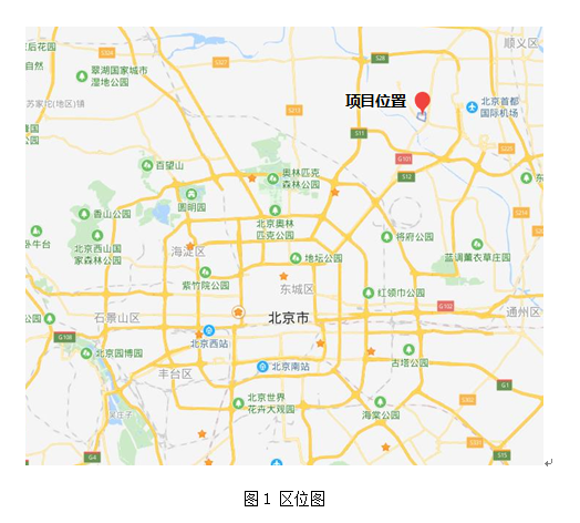 北京新國展二、三期項目位于北京市區(qū)的東北部,順義新城后沙峪組團(tuán)東南部,距市區(qū)、城市副中心均約20公里(見圖1)。