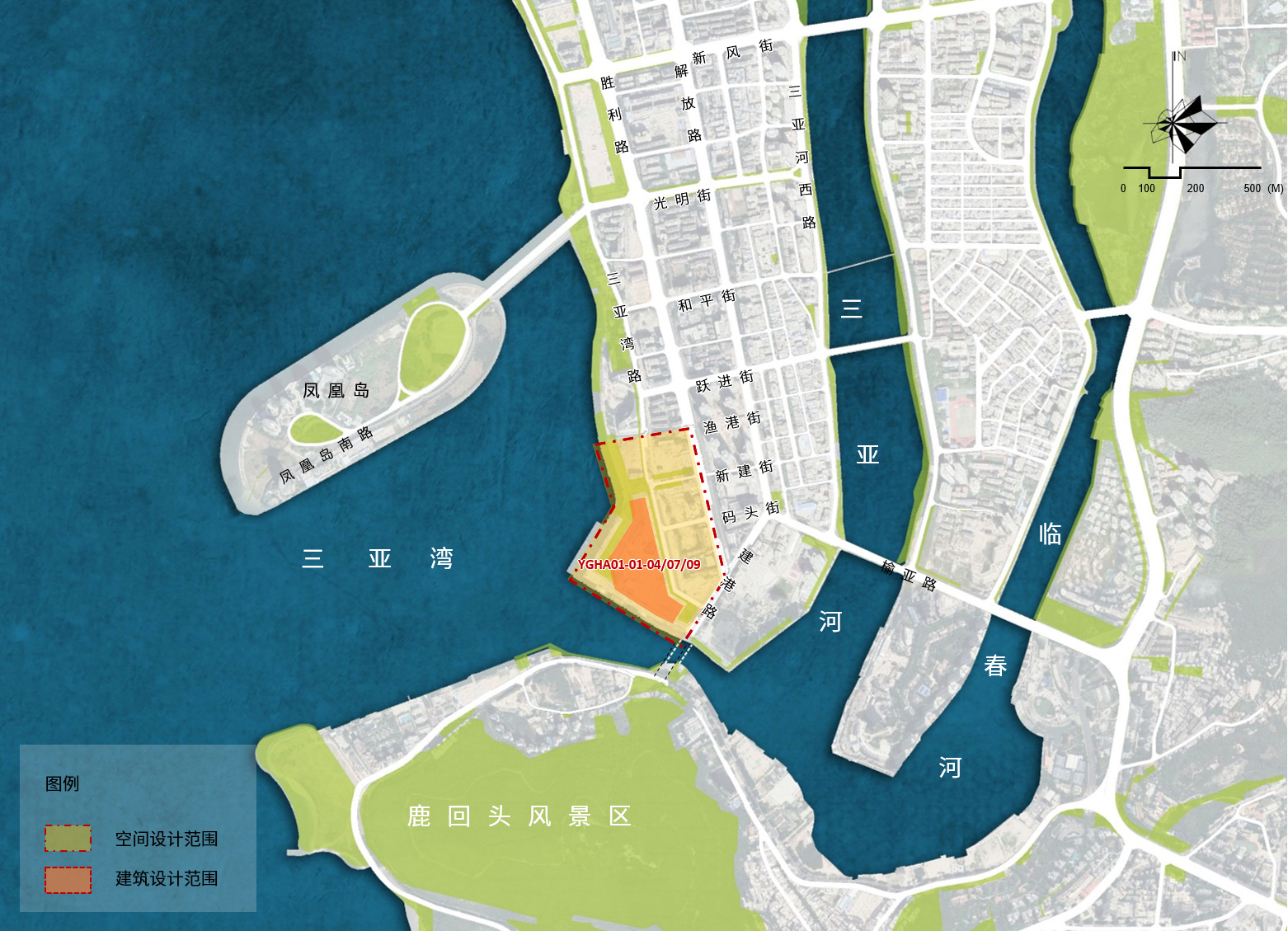 1.項(xiàng)目地點(diǎn):三亞文化商務(wù)區(qū)(空間設(shè)計(jì)范圍)位于三亞灣鳳凰海岸南端,三亞河口區(qū)域,北至漁港街,南至建港路,東至勝利路。三亞國(guó)際藝術(shù)港(建筑設(shè)計(jì)范圍)位于三亞文化商務(wù)區(qū)YGHA01-01-04/07/09地塊。